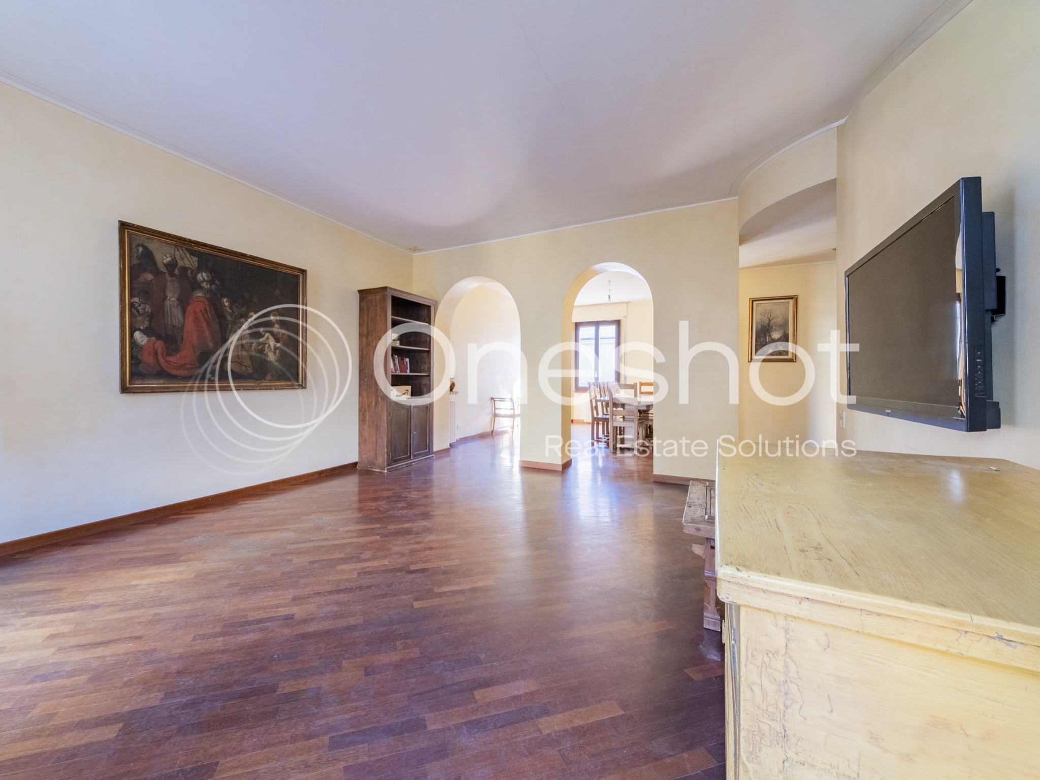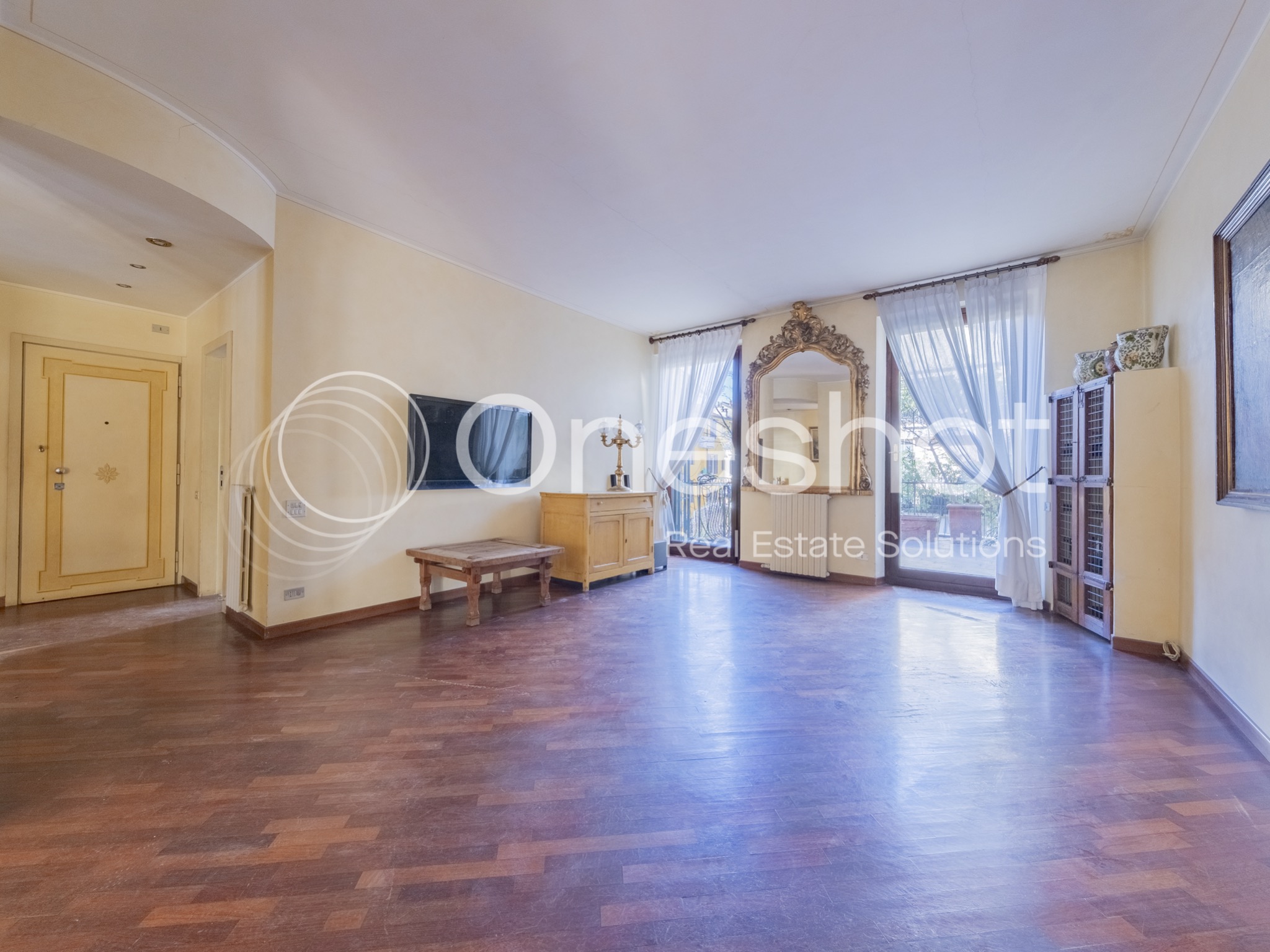 L’appartamento, da ristrutturare, presenta una distribuzione funzionale e strategica, facilmente personalizzabile in fase di ridisegno degli spazi interni. Dal terzo piano, servito da ascensore, si accede a un accogliente ingresso che conduce a un ampio soggiorno doppio e a una cucina semi-abitabile, entrambi con accesso al grande terrazzo riservato, uno spazio ideale per vivere momenti di relax all’aperto.