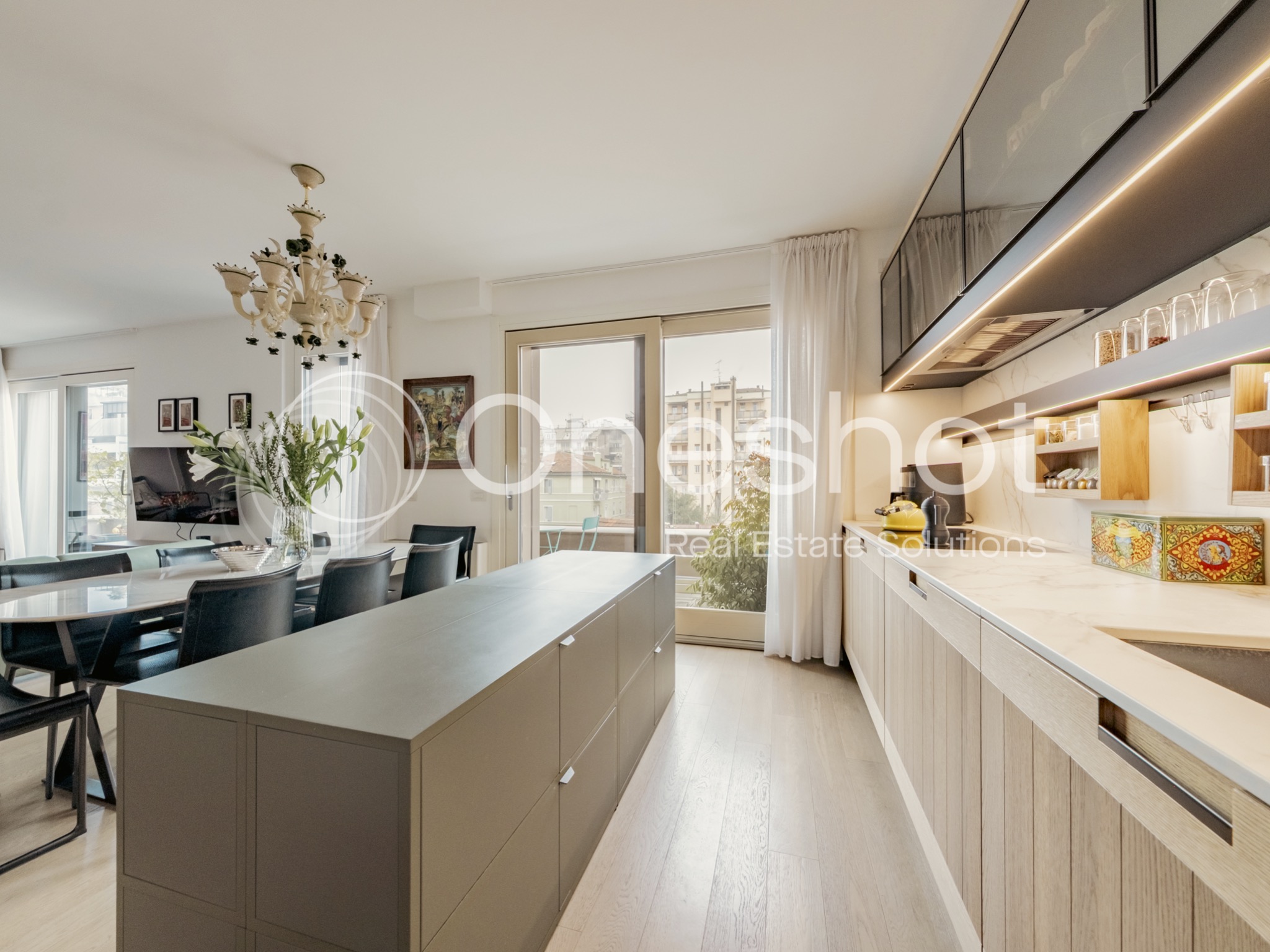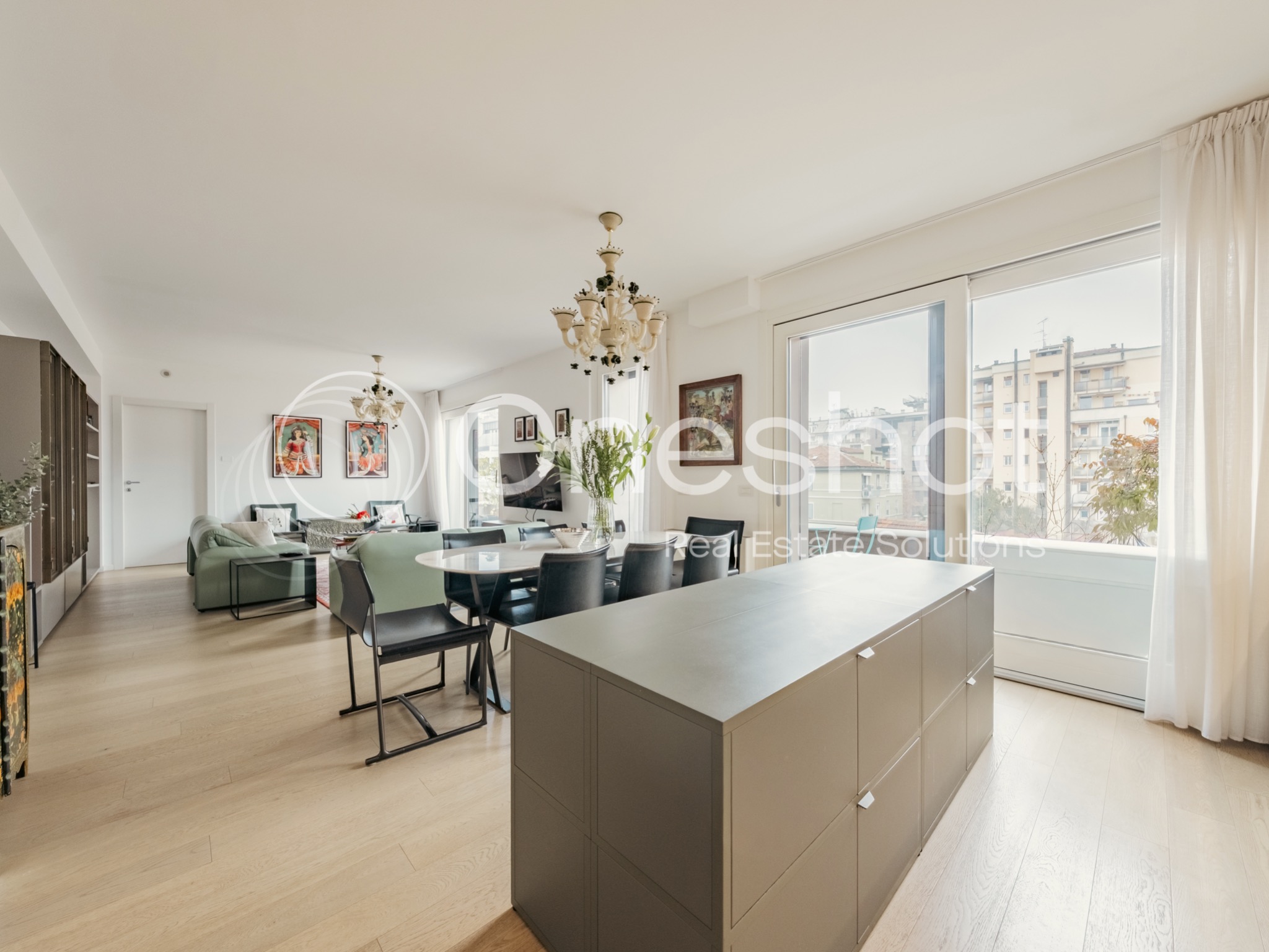 Grazie al piano alto, alla presenza di ampie vetrate e alla doppia esposizione angolare, l’immobile risulta estremamente luminoso. La razionale distribuzione dei locali garantisce una zona living di ampio respiro e una zona notte comoda e funzionale. Le finiture di elevato standing qualitativo rendono questo appartamento elegante ed accogliente al tempo stesso.