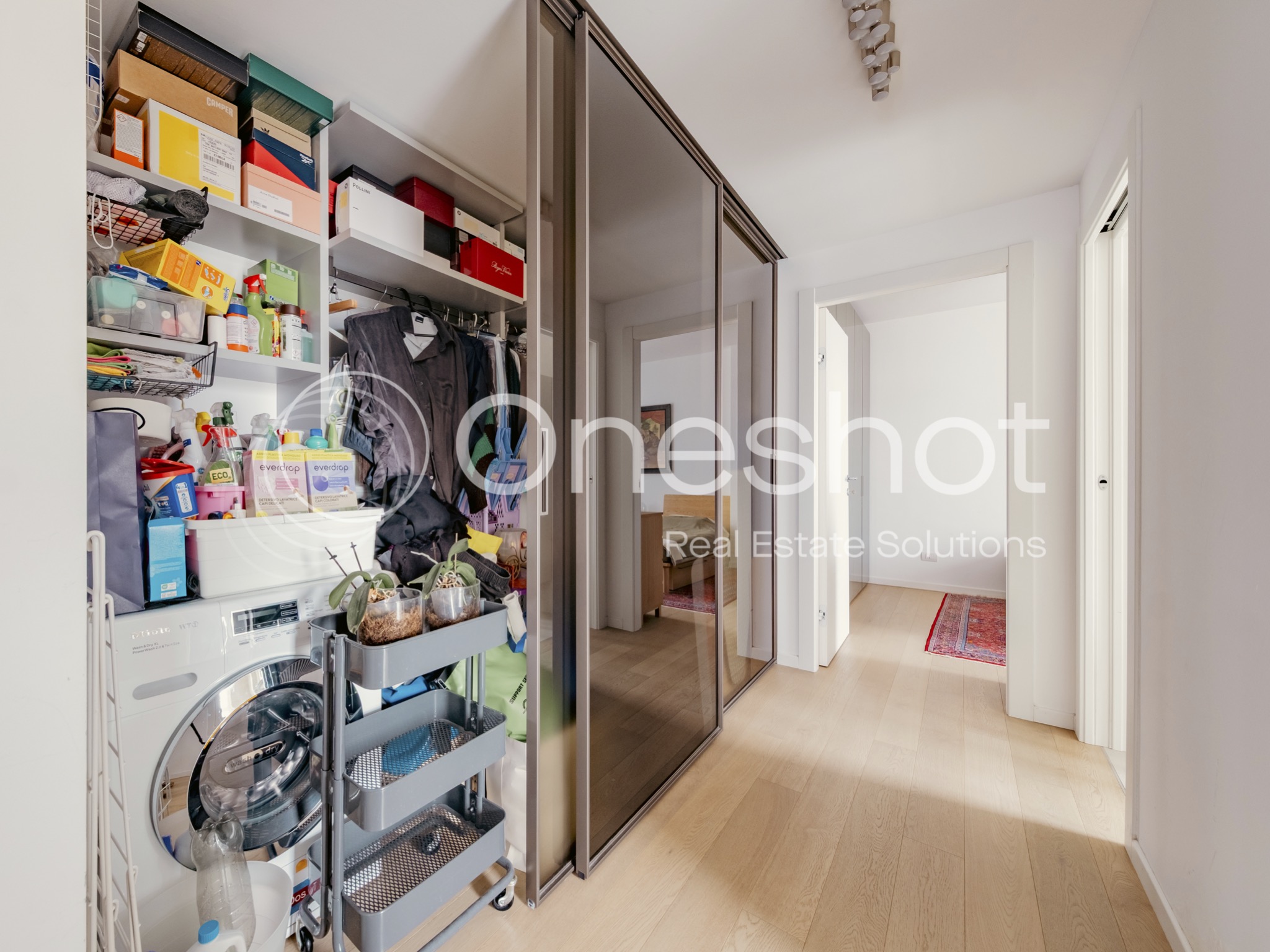 Le due ampie cantine, raggiungibili con ascensore, sono un valore aggiunto insieme al box doppio nello stabile, quotato a parte a € 140.000.